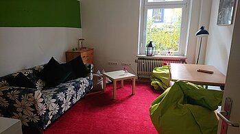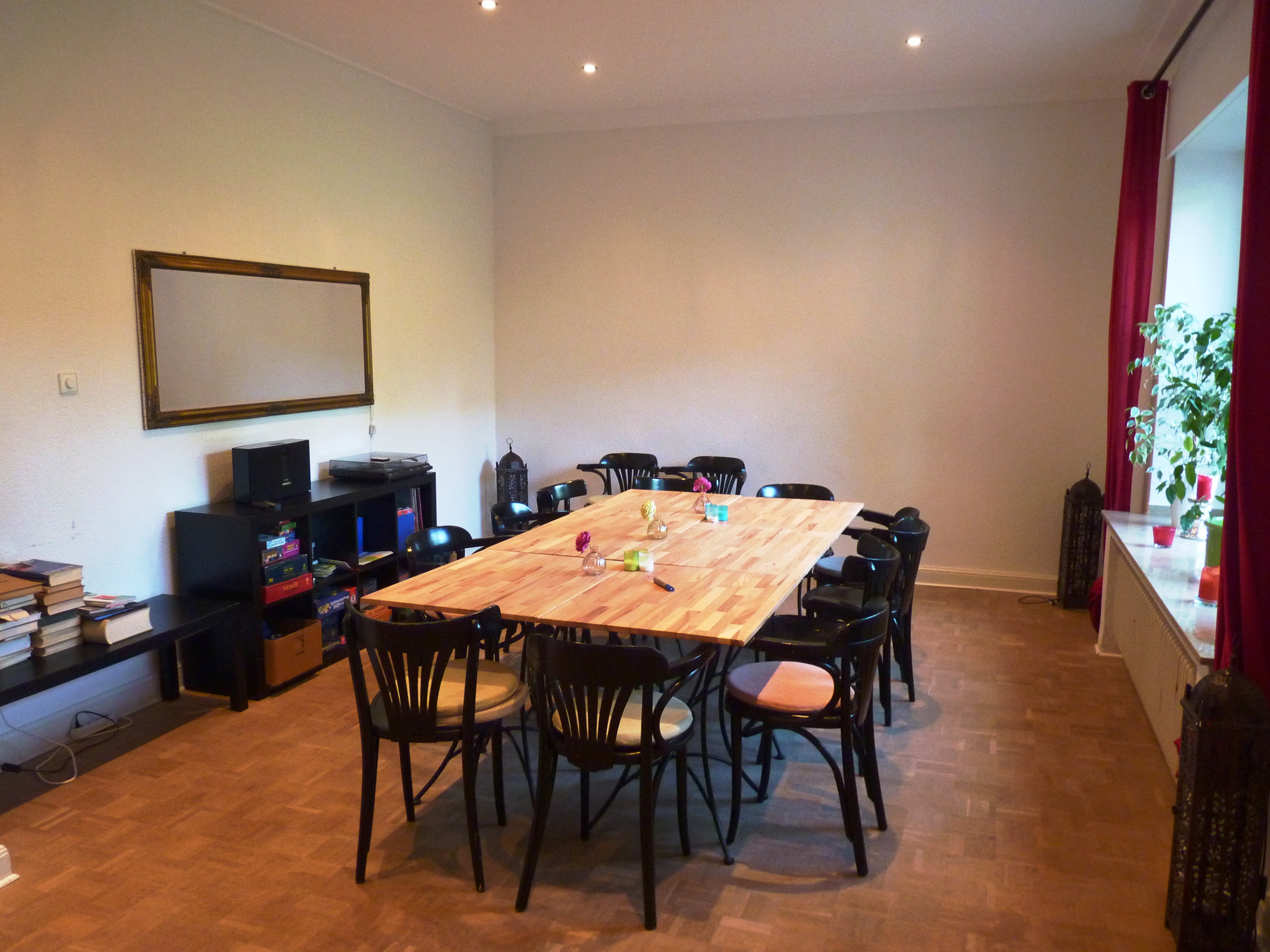 Auf den Fotos seht ihr die Veranstaltungsräume unseres Hauses, in denen sich so ziemlich alles abspielt. Auf dem ersten Foto seht ihr die Küche mit dem Fensterblick in Richtung Garten /Terasse. Die zwei nächsten zeigen den Hauptveranstaltungsraum, der für so ziemlich alles an Events genutzt wird. Das Foto Nummer Vier gibt euch einen Eindruck von unserer Komfort-Zone, in der ihr euch niederlassen und entspannen könnt. Das geht natürlich während unseren Veranstaltungen aber auch sonst in der Woche zwischen 9 und 16 Uhr (Freitags 14 Uhr).